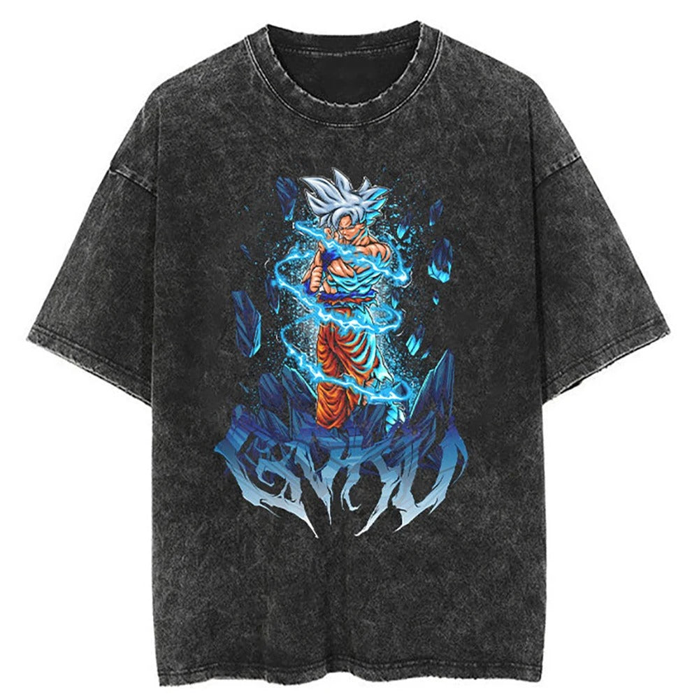 Exclusive Vintage Designs: Every T-shirt features artwork inspired by beloved anime moments, blending retro aesthetics with modern appeal. From Goku’s unstoppable spirit to Vegeta’s fierce determination, our designs resonate with true anime lovers.