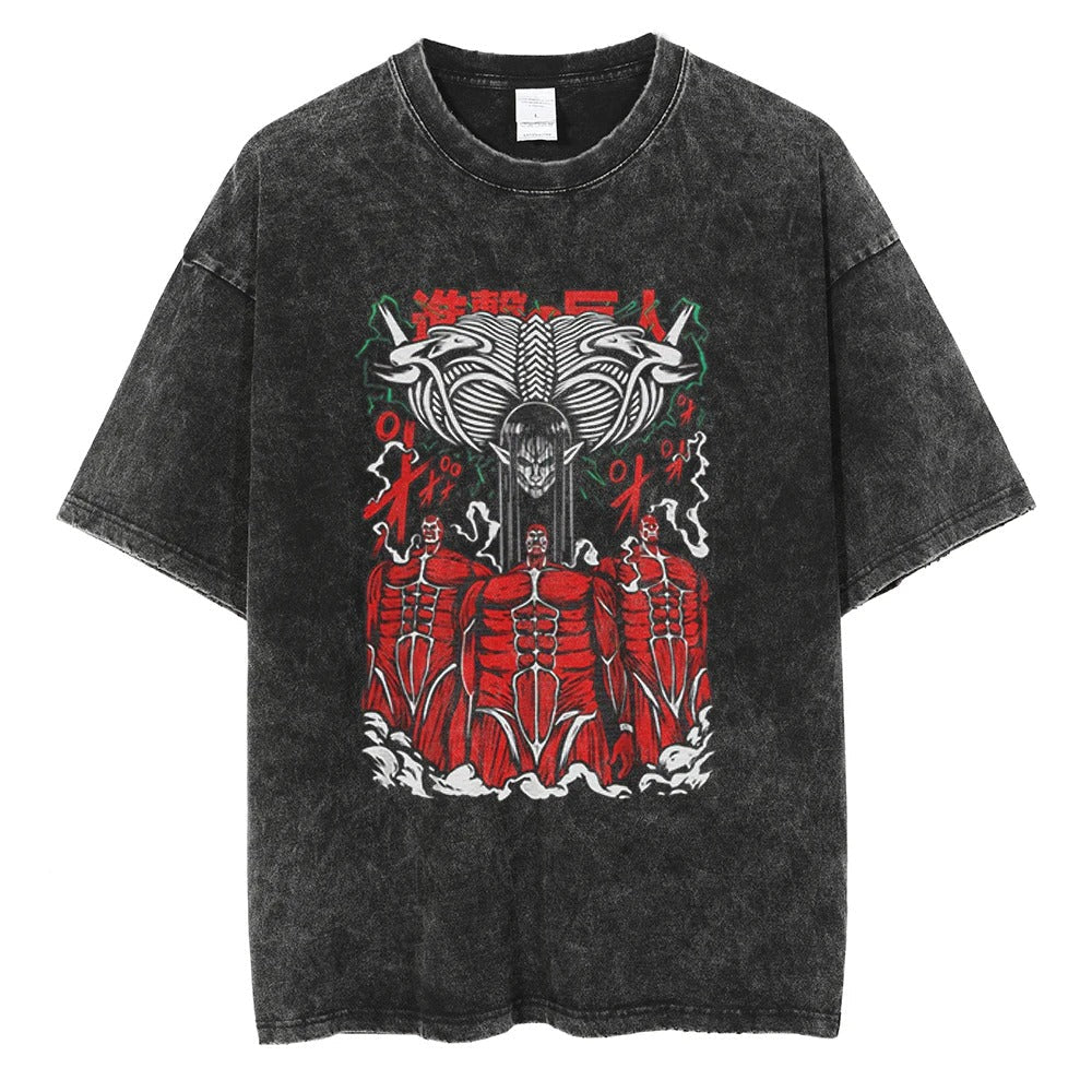 Exclusive Vintage Designs: Every T-shirt features artwork inspired by beloved anime moments, blending retro aesthetics with modern appeal. From the heroic Survey Corps to the terrifying Titans, our designs resonate with true anime lovers.